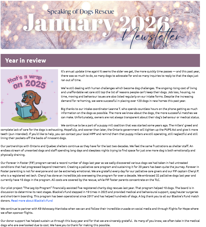 Speaking of Dogs Newsletters